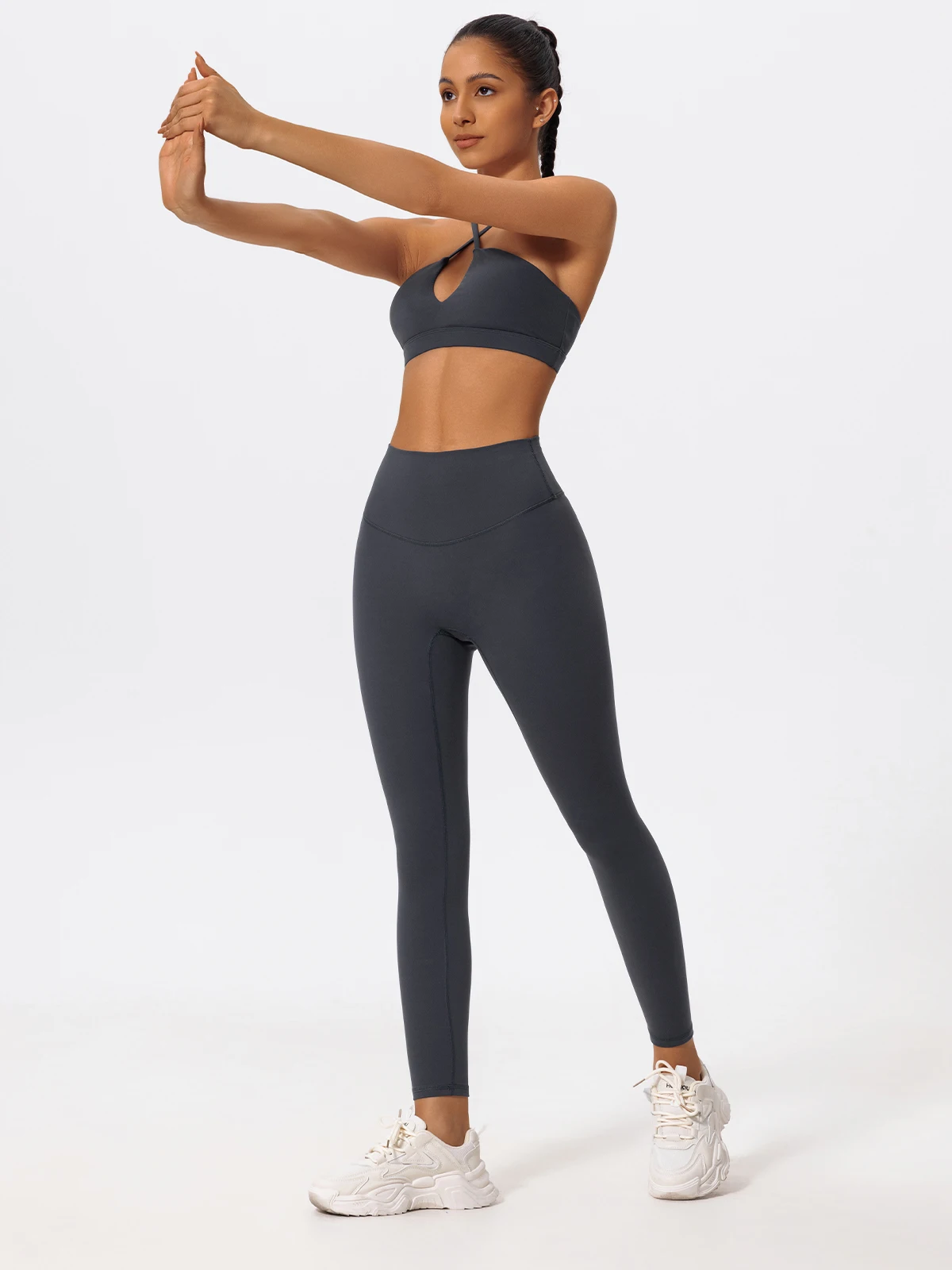 The CoreFlex™ Sculpt Set was made for women who want to merge presence and performance. The elegant halter neckline with a center keyhole highlights your upper body beautifully, while the high-rise leggings shape your figure without squeezing, enhancing your natural curves effortlessly.