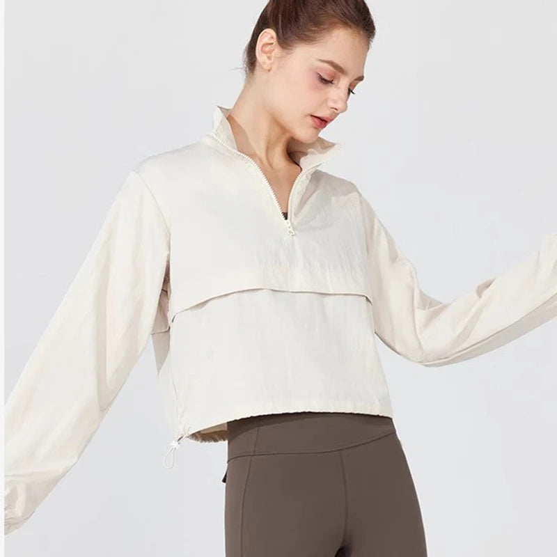 Certified UPF 50+, windproof and ultra-light. Designed with a cropped fit, quarter zip, and adjustable hem for a custom silhouette.